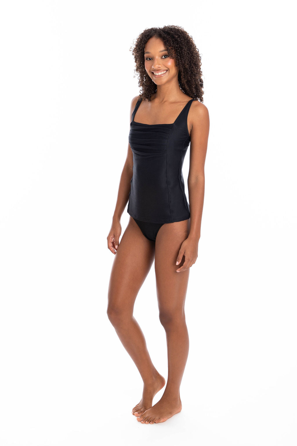 Enjoy the versatility of our tankini top and matching brief, featuring a stylish square neckline and elegant pleating detail on the bust. This two-piece swimsuit provides both coverage and support for a comfortable and confident beach or poolside experience.