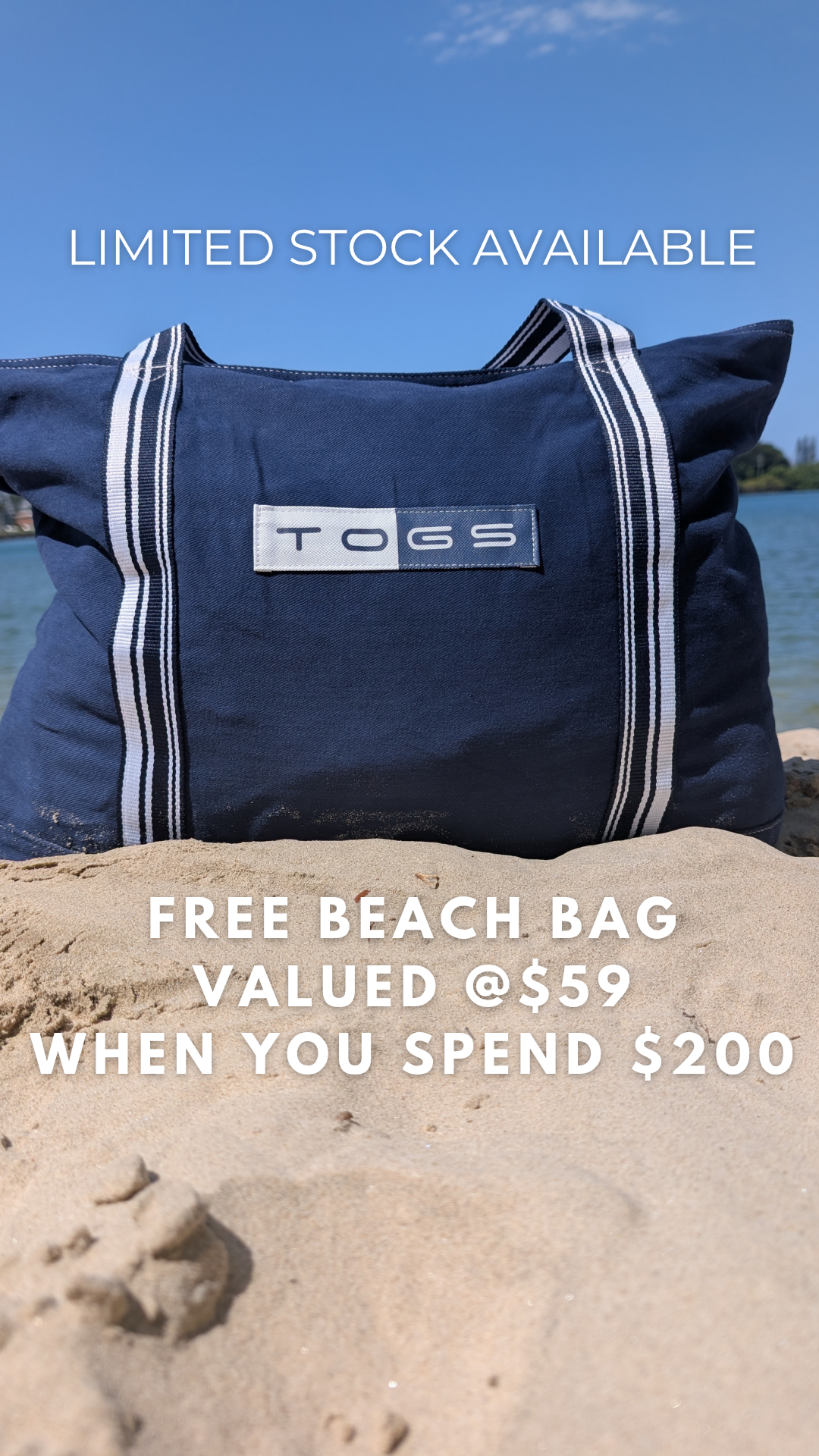 Stylish, functional, and easy to care for, the TOGS navy beach bag is a must-have accessory for any beachgoer.